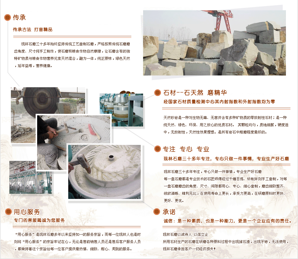 • 石磨專家現林石磨告訴你電動石磨機中石磨的優勢 • 淺談如何提高電動石磨香油機的出油率 • 現林電動香油石磨機打造健康生活 • 山東現林石磨解析電動石磨面粉機操作流程 • 如何鑒別石磨面粉? • 購買面粉要注意哪些? • 石碾的構成 |
